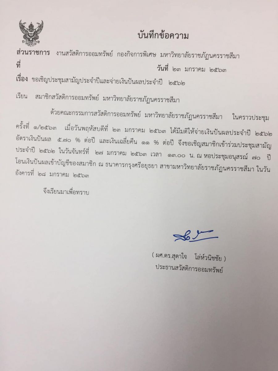 ขอเชิญประชุมสามัญประจำปีและจ่ายเงินปันผลประจำปี 2562